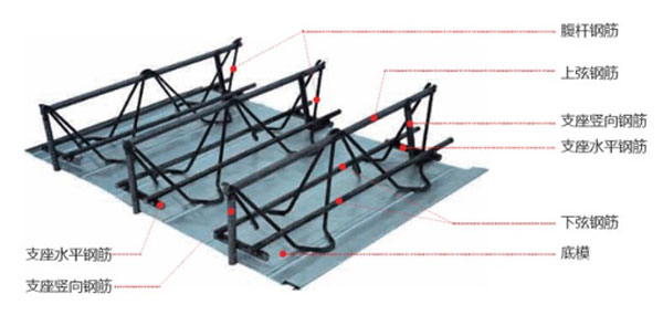 回答:由于鋼筋桁架模板長度的限制,不能通長布置,在梁上兩塊模板拼接處,須按一定構(gòu)造及設(shè)計(jì)要求布置短鋼筋,將兩塊模板上的桁架鋼筋綁扎連接起來,以達(dá)到桁架鋼筋在使用階段的受力作用。