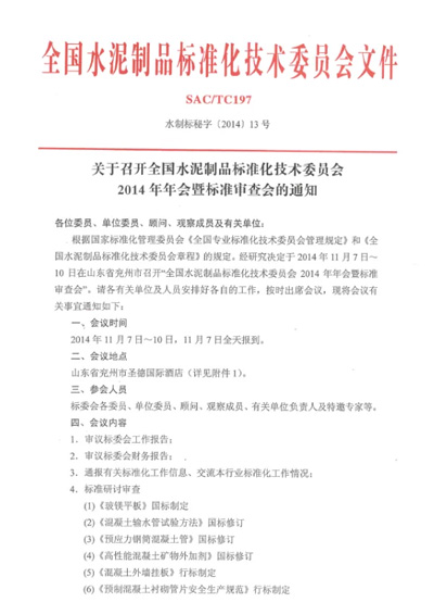 【會務(wù)公告】全國水泥制品標準化技術(shù)委員會2014年年會暨標準審查會