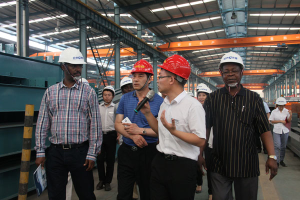 駐華大使們參觀了經(jīng)典集團(tuán)的生產(chǎn)車(chē)間、辦公樓、職工培訓(xùn)中心、宴會(huì)廳、愛(ài)心超市和千人職工餐廳。苗董事長(zhǎng)向非洲客人介紹了經(jīng)典集團(tuán)的生產(chǎn)經(jīng)營(yíng)、技術(shù)創(chuàng)新、產(chǎn)學(xué)研合作、人才引進(jìn)培養(yǎng)、企業(yè)文化建設(shè)、經(jīng)典產(chǎn)業(yè)發(fā)展等有關(guān)情況。大使們對(duì)經(jīng)典集團(tuán)的科學(xué)化、信息化、現(xiàn)代化的企業(yè)管理給予高度評(píng)價(jià),對(duì)經(jīng)典集團(tuán)在飛速發(fā)展中取得的成就表示欽佩。