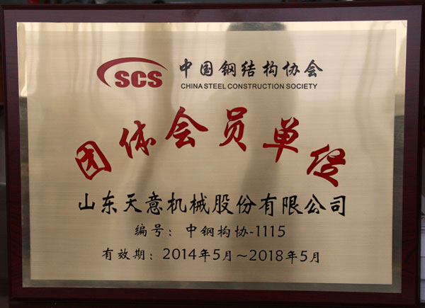 近日,山東天意機械股份有限公司成功加入中國鋼結(jié)構(gòu)協(xié)會,成為中國鋼結(jié)構(gòu)協(xié)會會員單位,新型建材裝備成功進入鋼結(jié)構(gòu)住宅建設(shè)中,加快了鋼結(jié)構(gòu)房屋的進程,大大促進中國鋼結(jié)構(gòu)的快速發(fā)展!