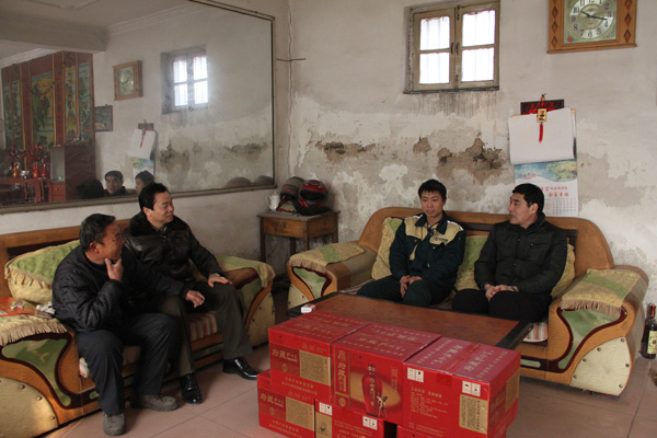 每到一戶,集團(tuán)領(lǐng)導(dǎo)與職工家屬親切握手,面對面促膝交談,了解職工的家庭收入、子女入學(xué)、外出打工等有關(guān)情況,送去大米、面粉、食用油等生活物資和600元慰問金。苗董事長表示,經(jīng)典集團(tuán)將一如既往的關(guān)愛職工,特別是困難家庭職工,讓職工感受到公司大家庭的溫暖,切實(shí)解決職工的生活困難,使職工全身心投入到公司發(fā)展中去。并叮嚀他們?nèi)缛粲惺裁蠢щy可以提出來,集團(tuán)公司會傾力幫助,公司就是一個(gè)大家庭,每位職工困難,都會牽動(dòng)整個(gè)領(lǐng)導(dǎo)班子的心,集團(tuán)公司會盡最大努力,想盡一切辦法,最大限度地讓每位困難職工及其家屬過上一個(gè)安樂祥和的春節(jié)。