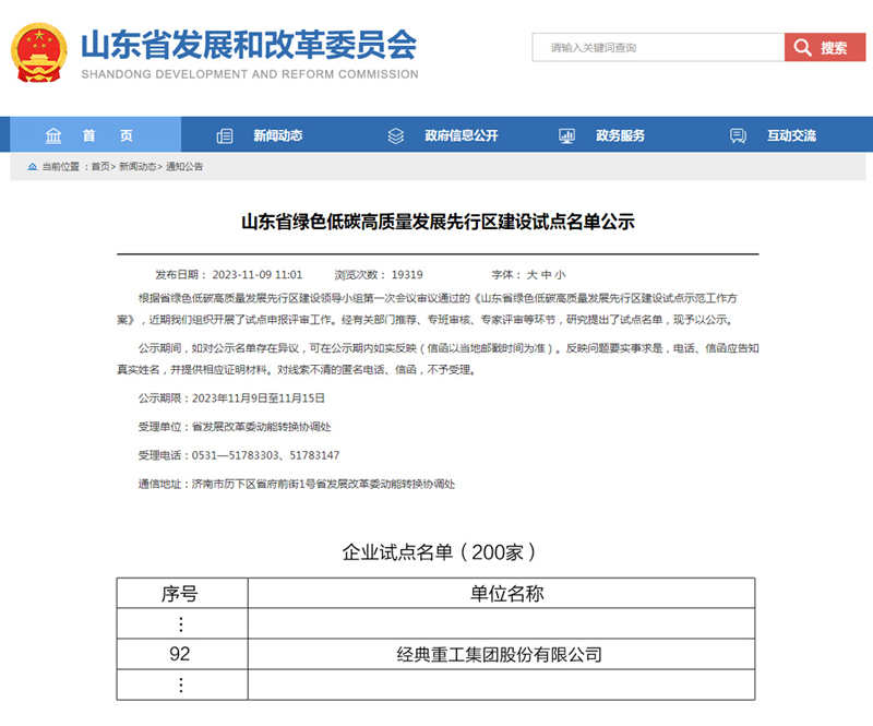 近日,山東省發(fā)展和改革委員會公示了山東省綠色低碳高質(zhì)量發(fā)展先行區(qū)建設(shè)試點名單,經(jīng)典集團(tuán)上榜企業(yè)試點名單。
