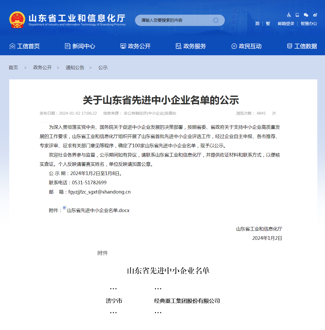 首批上榜!經(jīng)典集團入選山東省首批先進中小企業(yè)公示名單
