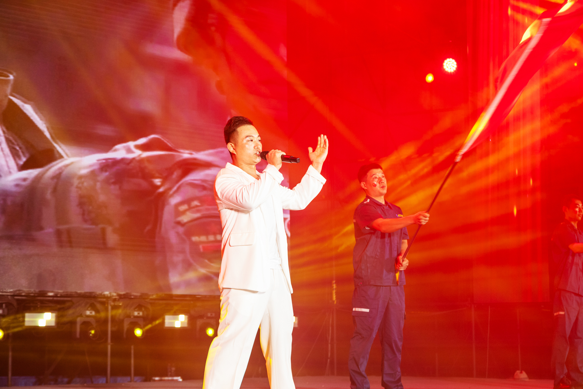 演出在舞蹈《盛世歡歌》的歡快熱烈節(jié)奏中激情開場,舞者們以優(yōu)美的舞姿瞬間點燃了現(xiàn)場的熱情。隨后,經(jīng)典集團董事會主席苗樹文發(fā)表了熱情洋溢的致辭,對前來參會的領導及嘉賓表示了最誠摯的歡迎和衷心的感謝。接著,歌曲《我們的時光》《包容》《諾言》《紅日》《故鄉(xiāng)》、舞蹈《眉飛色舞》、戲曲《變臉》《穆桂英掛帥》、架子鼓樂器表演《逆戰(zhàn)》等20個節(jié)目輪番上演,形式多樣,精彩紛呈,現(xiàn)場掌聲雷動,歡笑聲此起彼伏。晚會中穿插的抽獎環(huán)節(jié),將現(xiàn)場氛圍推向了高潮。最后,晚會在合唱《歌唱祖國》中徐徐落下帷幕,集團領導上臺與演職人員合影留念。