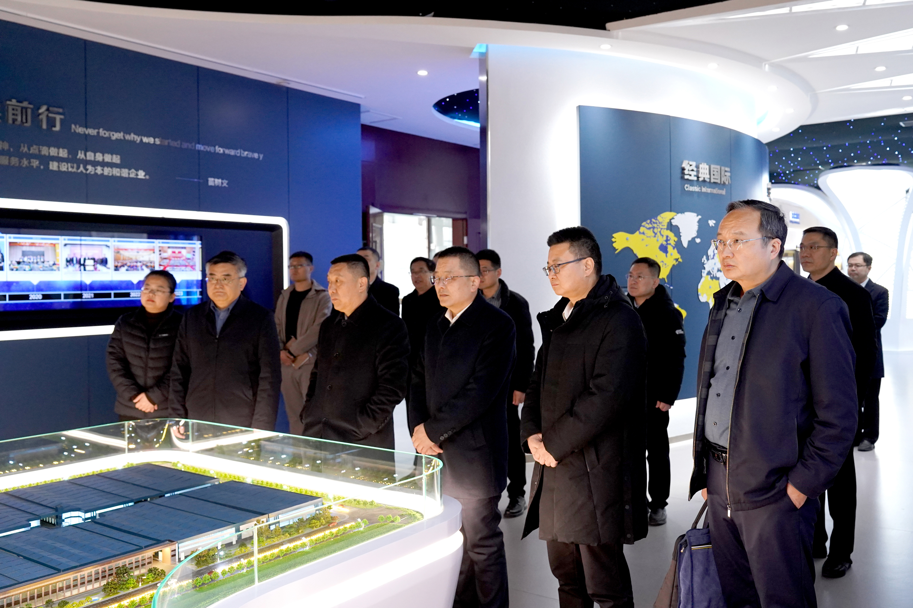 在集團文化展館,史振華董事長對濟寧學院領(lǐng)導的到來表示熱烈歡迎。仲紅波書記一行聽取了企業(yè)的發(fā)展歷程、文化建設(shè)、鋼結(jié)構(gòu)行業(yè)發(fā)展有關(guān)介紹,了解了企業(yè)的科技創(chuàng)新、產(chǎn)學研合作、人才引進、科研平臺建設(shè)等情況。