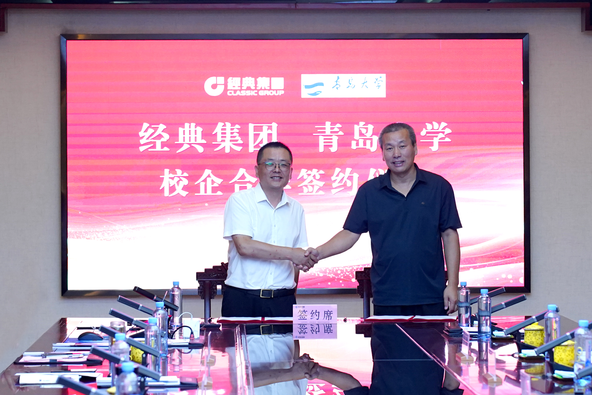 會(huì)上,與會(huì)專(zhuān)家領(lǐng)導(dǎo)對(duì)深化產(chǎn)業(yè)領(lǐng)域合作,深入交換了意見(jiàn),青島大學(xué)與經(jīng)典集團(tuán)簽署了合作協(xié)議。