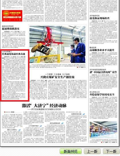 《濟(jì)寧日報》報道經(jīng)典集團(tuán):經(jīng)典速度鑄就經(jīng)典傳奇