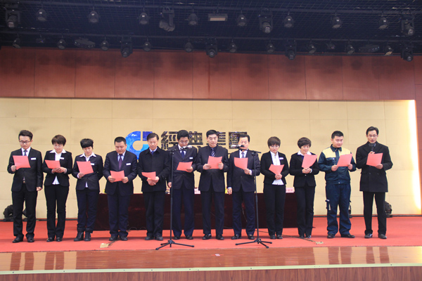 2月9日上午,經(jīng)典集團(tuán)在職工宴會(huì)中心隆重召開2017年誓師動(dòng)員暨管理層承諾宣誓大會(huì),總結(jié)2016年企業(yè)的發(fā)展情況,安排部署2017年重點(diǎn)工作任務(wù),進(jìn)一步鼓舞斗志,強(qiáng)化舉措,銳意進(jìn)取,拼搏實(shí)干,推進(jìn)集團(tuán)公司科學(xué)發(fā)展、跨越發(fā)展。集團(tuán)董事會(huì)、各子公司負(fù)責(zé)人、各部門負(fù)責(zé)人、項(xiàng)目經(jīng)理代表、施工隊(duì)長代表、制造部全體職工近1000人參加會(huì)議。
