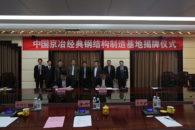 揭牌儀式前,中國京冶鋼結(jié)構(gòu)事業(yè)部常務(wù)副總經(jīng)理常好誦和經(jīng)典集團(tuán)董事長苗樹文在公司三樓會議中心共同簽訂了戰(zhàn)略合作框架協(xié)議。中國京冶與經(jīng)典集團(tuán)將本著平等、誠信、互惠、共贏的原則,利用各自優(yōu)勢在鋼結(jié)構(gòu)建筑領(lǐng)域建立長期戰(zhàn)略合作伙伴關(guān)系,在高層、超高層鋼結(jié)構(gòu)建筑、大跨度鋼結(jié)構(gòu)建筑、鋼結(jié)構(gòu)住宅產(chǎn)業(yè)化、鋼結(jié)構(gòu)工程設(shè)計施工制造管理、節(jié)能環(huán)保維護(hù)系統(tǒng)等領(lǐng)域開展項目工程合作、科研與技術(shù)合作。