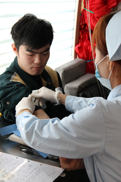 經(jīng)過閱讀學(xué)習(xí)獻(xiàn)血基本常識,填寫登記表,例行體檢幾個環(huán)節(jié)后,志愿者們按順序登上了獻(xiàn)血車。他們在獻(xiàn)血時個個積極勇敢,情緒穩(wěn)定,臉上洋溢著自豪的笑容,獻(xiàn)血結(jié)束后,在現(xiàn)場領(lǐng)取了濟(jì)寧市中心血站發(fā)放的無償獻(xiàn)血證。本次獻(xiàn)血活動有166名職工自愿報名參加,其中趙康、吳振興等志愿者更是有多次無償獻(xiàn)血的經(jīng)歷。