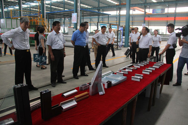 在觀摩會(huì)現(xiàn)場,與會(huì)領(lǐng)導(dǎo)首先聽取了劉董事長關(guān)于企業(yè)發(fā)展情況的匯報(bào),隨后深入公司年產(chǎn)10萬噸高端鋁型材的生產(chǎn)車間,并現(xiàn)場聽取了項(xiàng)目負(fù)責(zé)人的情 況介紹。通過實(shí)地觀摩和聽取匯報(bào),觀摩團(tuán)領(lǐng)導(dǎo)對(duì)我公司能夠按照科學(xué)發(fā)展觀和區(qū)委區(qū)政府關(guān)于跨越發(fā)展的總要求,堅(jiān)持解放思想,抓住機(jī)遇,高點(diǎn)定位,高點(diǎn)建設(shè),開拓進(jìn)取,攻堅(jiān)破難,加快發(fā)展的做法給予充分肯定,并對(duì)我公司生產(chǎn)經(jīng)營所取得的成績給予高度評(píng)價(jià)和贊賞。