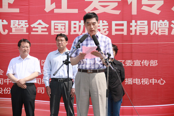 兗州區(qū)委常委、宣傳部長初建偉,副區(qū)長李勇,濟寧市廣播電視臺副臺長馬漢濤,經(jīng)典集團董事長苗樹文,總經(jīng)理杜福生,濟寧市廣播電視臺、兗州區(qū)委宣傳部、殘疾人聯(lián)合會、志愿者協(xié)會、廣播電視中心等有關(guān)部門負責人出席了此次助殘活動。