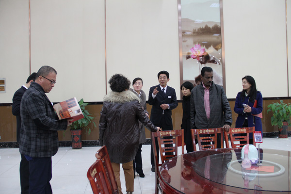 印度貿(mào)易考察團(tuán)參觀了經(jīng)典集團(tuán)的營(yíng)銷中心、行政辦公室、愛心超市、商務(wù)餐廳和千人員工餐廳,聽取了經(jīng)典集團(tuán)發(fā)展介紹,進(jìn)一步了解了經(jīng)典集團(tuán)的生產(chǎn)經(jīng)營(yíng)、文化建設(shè)、紅木家俱、合作交流等有關(guān)情況。印度貿(mào)易考察團(tuán)對(duì)經(jīng)典集團(tuán)的快速發(fā)展和多元化發(fā)展給予高度評(píng)價(jià)。