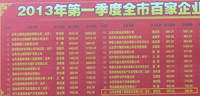 為表彰和宣傳企業(yè)誠信納稅,進(jìn)一步扶持企業(yè)做大做強(qiáng),同時(shí)推動(dòng)兗州經(jīng)濟(jì)升級發(fā)展,近期兗州市對2013年第一季度納稅50強(qiáng)企業(yè)排行榜進(jìn)行了公示,山東經(jīng)典重工集團(tuán)股份有限公司榮登2013年第一季度兗州納稅五十強(qiáng)企業(yè)排行榜第二十六位。