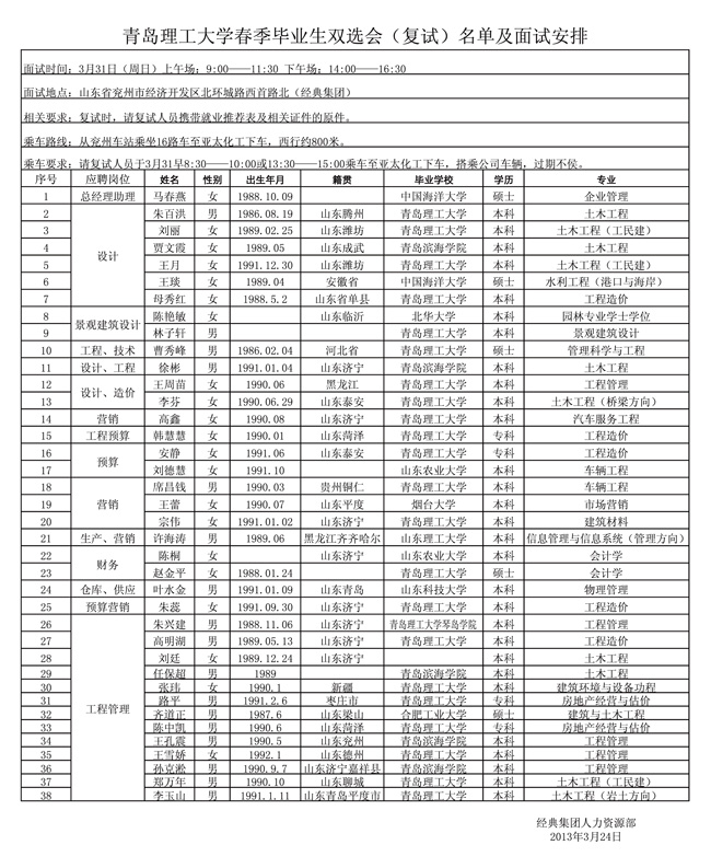 雙選會現(xiàn)場畢業(yè)生共投遞我公司簡歷286份,經(jīng)過初試篩選,進入復試人員38位,具體復試安排及進入復試人員名單請參考《青島理工大學春季畢業(yè)生雙選會(復試)名單及面試安排》。