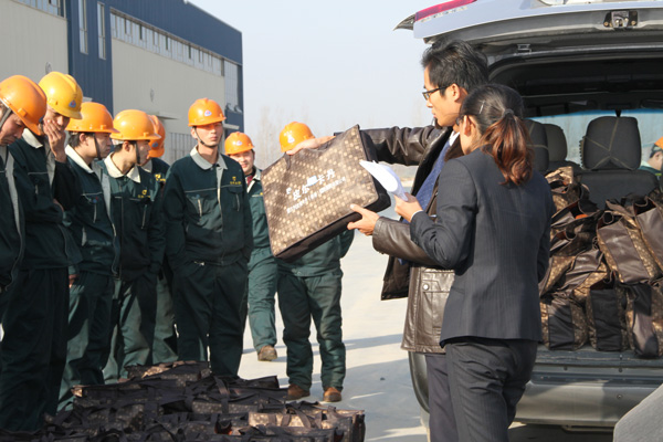 隨著天氣不斷轉(zhuǎn)涼,公司切實(shí)為職工健康著想,做好職工保暖工作,特斥資140多萬元,在濟(jì)寧貴和購物中心訂購了一批高檔兔毛“皮爾卡丹”皮衣,并分批發(fā)放到每一個(gè)員工手中。