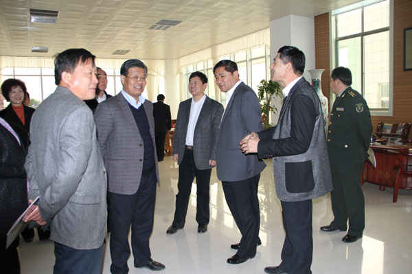 集團(tuán)公司董事長(zhǎng)陪同市領(lǐng)導(dǎo)及科學(xué)發(fā)展觀工作組領(lǐng)導(dǎo)參觀辦公區(qū)