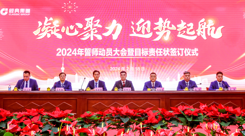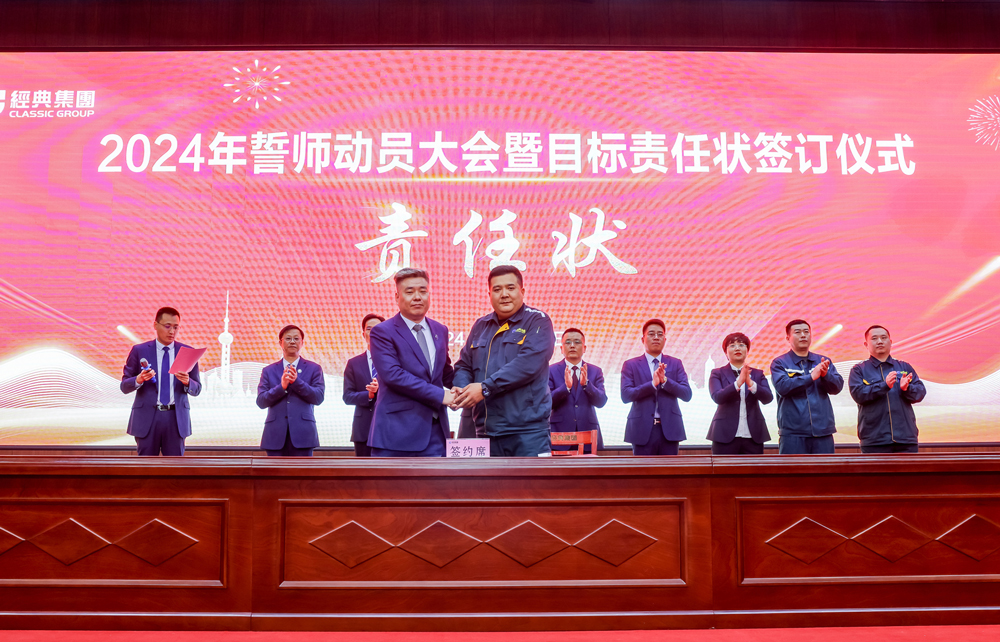 團(tuán)結(jié)凝聚力量,奮斗鑄就偉業(yè)。2月18日上午,經(jīng)典集團(tuán)2024年誓師動(dòng)員大會(huì)暨目標(biāo)責(zé)任狀簽訂儀式在職工會(huì)議中心成功召開(kāi),動(dòng)員集團(tuán)各部門(mén)錨定2024年各項(xiàng)目標(biāo)任務(wù),統(tǒng)一思想、凝心聚力,全力以赴抓好落實(shí),確保集團(tuán)高質(zhì)量發(fā)展再上新臺(tái)階。集團(tuán)董事會(huì)、集團(tuán)公司分管負(fù)責(zé)人、各單位負(fù)責(zé)人、工程項(xiàng)目經(jīng)理、各單位職工代表參加了會(huì)議。